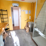 Une salle de bain avec toilettes sèches